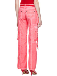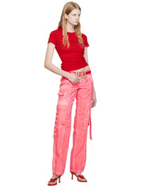Plain-woven stretch cotton trousers. Fading throughout. · Belt loops · Five-pocket styling · Zip-fly · D-ring at front · Strap and bellows pocket at outseams · Logo embroidered at back waistband · Logo-engraved gunmetal-tone hardware Available exclusively at SSENSE. Supplier color: Bubblegum