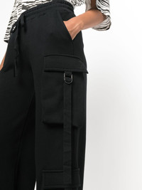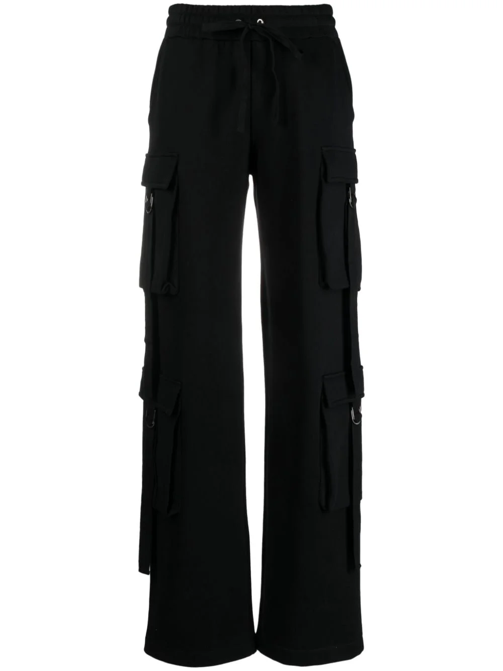 straight-leg cotton cargo trousers Highlights - Black - Cotton - Multiple cargo pockets - Elasticated drawstring waistband - Slip pockets to the sides - Rear welt pocket - Straight leg Imported Composition Cotton 100% SIZE & FIT Model measurements Height 5 ft 10 in(1.77 m) Bust/Chest 31.88 in(81 cm) Hips 36.22 in(92 cm) Waist 24.01 in(61 cm) FittingInformation Designed for a straight-leg fit, these trousers allow for a close fit at the waist and an unrestricted, comfortable fit over the leg The elasticated waist allows for a comfortable fit Made from a midweight non-stretch fabric, this piece offers minimal elasticity when worn This piece fits true to size – take your usual size Washing instructions Machine Wash