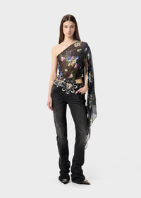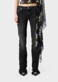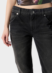 STRAIGHT LEG FIVE-POCKET JEANS WITH EMBROIDERED LOGO AND APPLIED FLOWERS ON THE BACK. COMPOSITION: 100% COTTON - MID-WASH DENIM - EMBROIDERED BLUMARINE LOGO ON THE BACK - EMBROIDERED APPLIED FLOWERS ON THE BACK - STRAIGHT LEG - FIVE-POCKET - LOOPED BELT LOOPS - BUTTON AND ZIP CLOSURE - LABEL WITH MONOGRAM B EMBROIDERED ON THE BACK - PUDDLE HEM - REGULAR FIT DETAILS COLORS: BLACK