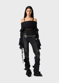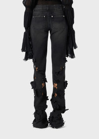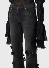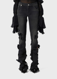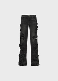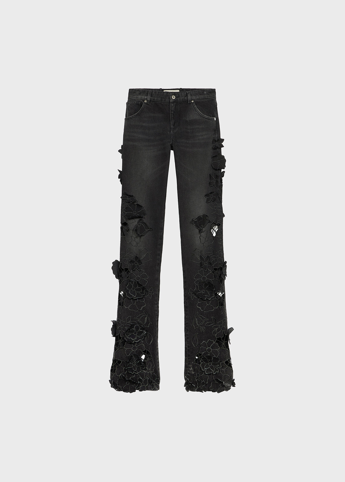 STRAIGHT LEG FIVE-POCKET JEANS WITH 3D FLOWER EMBROIDERY INLAY WITH CUTOUTS. COMPOSITION: 100% COTTON - MEDIUM WASH DENIM - INLAY EMBROIDERY WITH 3D FLOWERS AND CUTOUTS - STRAIGHT LEG - FIVE-POCKET - LOOPED BELT - BUTTON AND ZIP CLOSURE - MONOGRAM B EMBROIDERED ON THE POCKET - PUDDLE HEM - REGULAR FIT DETAILS COLORS: BLACK