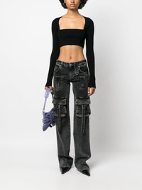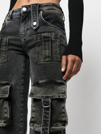 strap-detail low-rise cargo trousers Highlights - Medium grey - Stretch-cotton - Washed denim - Embroidered logo to the rear - Rivet detailing - Strap detailing - Low-rise - Belt loops - Straight leg - Concealed fly and button fastening - Classic five pockets - Two front cargo pockets - Two front patch pockets - Straight hem Imported Composition Cotton 98%, Elastane 2% SIZE & FIT Model measurements Height 5 ft 10 in(1.78 m) Bust/Chest 31.9 in(81 cm) Hips 36.6 in(93 cm) Waist 23.2 in(59 cm) FittingInformation Designed with a flared hem, these jeans allow for a close fit at the waist with a slim fit over the leg and widening towards the hem Constructed from stretch denim, this piece offers a stretch fit with durability This piece fits true to size – take your usual size