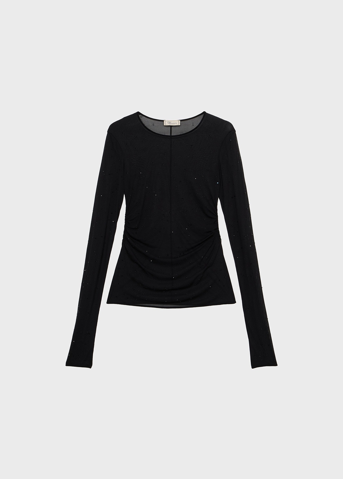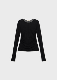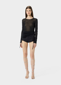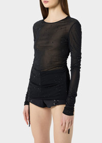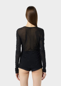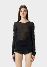 SECOND-SKIN JERSEY TOP WITH PLASTIC DROP-EFFECT DECORATIONS, GLOVE SLEEVES, AND A TEARDROP CUTOUT AT THE BACK COMPOSITION: 100%VI - SECOND SKIN VISCOSE JERSEY - PLASTIC DROP-EFFECT DECORATIONS - CREW NECKLINE - LONG GLOVE SLEEVES - KEYHOLE BACK - REGULAR FIT DETAILS COLORS: BLACK