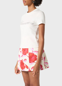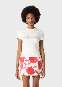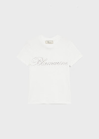 COTTON JERSEY T-SHIRT WITH A ROUND NECKLINE AND BLUMARINE RHINESTONE LOGO. COMPOSITION: 100% COTTON - COTTON JERSEY - BLUMARINE RHINESTONE EMBROIDERY LOGO DETAILING - ROUND NECKLINE - SHORT SLEEVES - REGULAR FIT DETAILS COLORS: WHITE