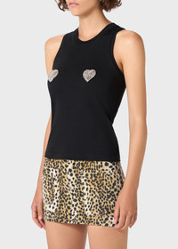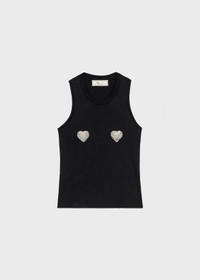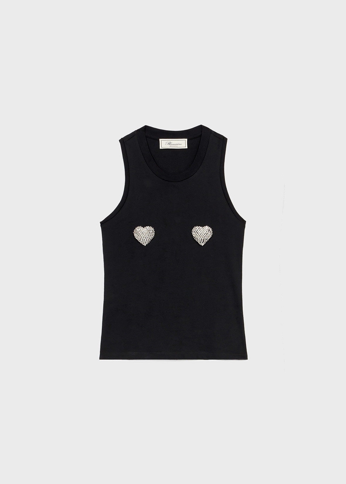 TWO GLASS RHINESTONE-EMBROIDERED HEARTS ADD ALLURE TO THE COTTON JERSEY TANK TOP. COMPOSITION: 100% COTTON - COTTON JERSEY - GLASS RHINESTONE-EMBROIDERED HEARTS - ROUND NECKLINE - SHOULDER PADS - SLEEVELESS CUT - SLIM FIT DETAILS COLORS: BLACK