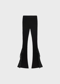 Ribbed viscose pants with flared hem embellished with lace ruffle decorations on the sides. - Ribbed viscose - Bell-bottom style - Lace ruffle decorations on the hem - Elasticated waist - Body-hugging fit DETAILS To find the correct size for you, please consult the Size Guide. Composition: Yarn 1: 72% viscose, 28% polyester; Lace: 100% polyamide Hand wash - room temperature; Do not bleach; Do not tumble dry; Iron at low temperature - no steam; Dry clean with tetrachloroethylene or hydrocarbons - gentle cycle; Dry flat in shade; Wash inside out; Iron inside out