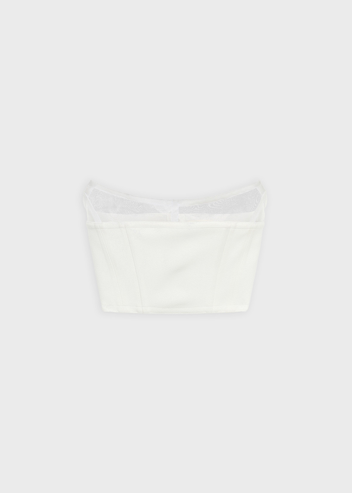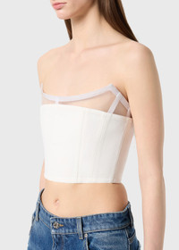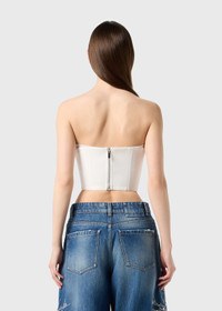 DOUBLE CREPE BUSTIER WITH SHAPED CRINOLINE YOKE, BONING, BACK ZIP CLOSURE. COMPOSITION: 95%PL 5%EA - DOUBLE CREPE - SHAPED CRINOLINE YOKE - BONING - BACK ZIP CLOSURE - FORM-FITTING DETAILS COLORS: WHITE