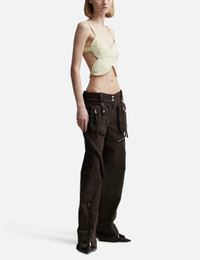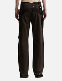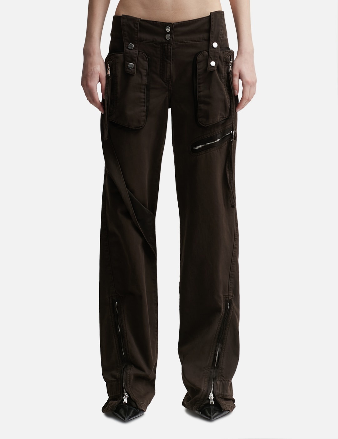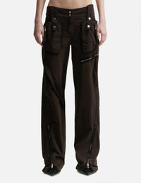 - Blumarine - Cargo Pants with Satin Inserts - Regular fit - Zip fly with double button closure - Studded loops - Satin inserts in spiral - Bellows pockets - Zipped pockets - Zipped bottom - Color: Chocolate Brown - Country Of Origin: IT - Material: 100% Cotton - See more Pants and Clothing SIZING - Model wears size 40 - Model measures: Height 179cm, Chest 32”/81cm, Waist 23’’/58.42cm, Hip 35’’/88.9cm