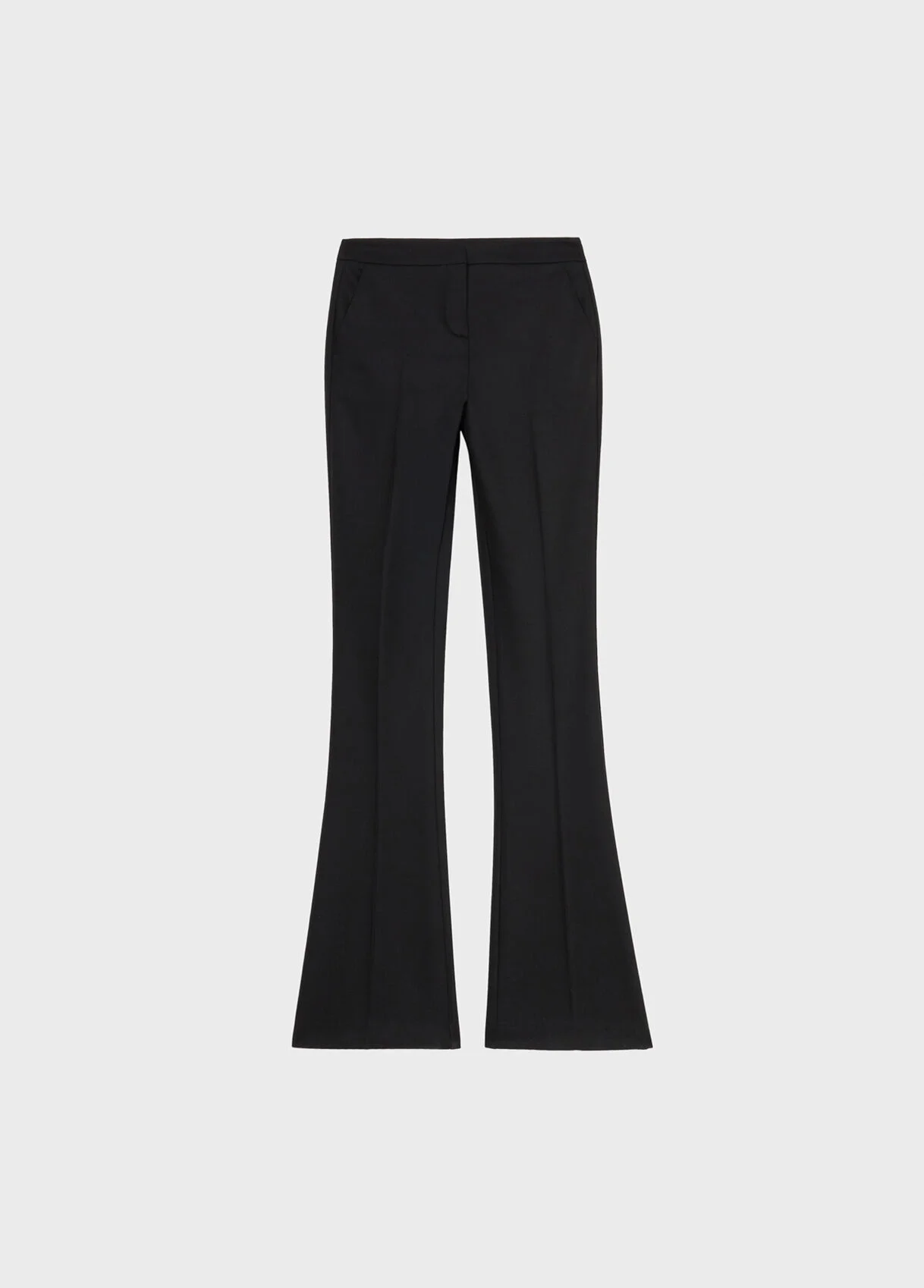 twill pipe pants with puddle hem and back welt pockets. - Wool twill - Pipe line - Hidden button and zip closure - Puddle hem - Back welt pockets - Metal tag with blumarine logo on the back - Regular fit - Made in Italy DETAILS To find the correct size for you, please consult the Size Guide. Composition: Main fabric: 54% polyester, 44% virgin wool, 2% elastane; Fabric 2: 57% viscose, 43% polyester Do not wash; Do not bleach; Do not tumble dry; Iron at low temperature - no steam; Dry clean with tetrachloroethylene or hydrocarbons - gentle cycle; Clean inside out; Iron inside out
