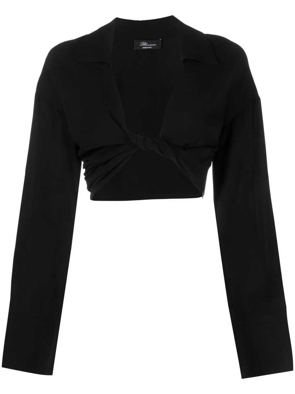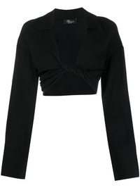twist-detail cropped top black stretch-design twist detailing classic collar long wide sleeves buttoned cuffs cropped Made in Italy Composition Viscose 98%, Spandex/Elastane 2% SIZE & FIT Model measurements Height 5 ft 11 in(1.8 m) Bust/Chest 31.49 in(80 cm) Hips 35.43 in(90 cm) Waist 24.4 in(62 cm) FittingInformation This piece fits true to size. We recommend you get your regular size Cut for a slim fit Made with a mid-weight stretch fabric