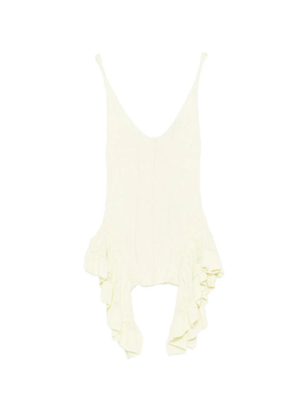 V-neck top Highlights - Yellow - V-neck - Ruffled hem - Sleeveless Made in Italy Composition Viscose 70%, Cotton 30% Washing instructions Hand Wash