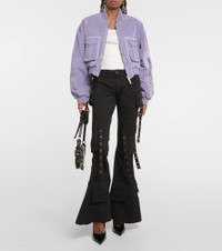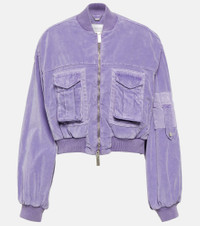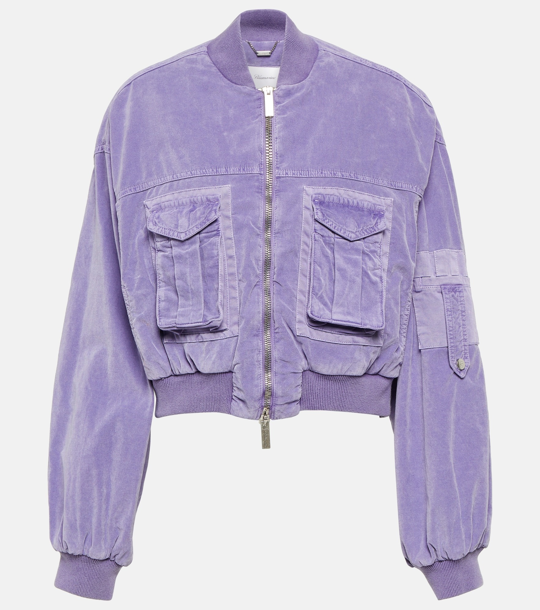 Blumarine captures the opulence of the '00s, contemporizing the Y2K aesthetic for a modern audience. This velvet bomber jacket has cargo-style pockets and is designed for a slightly cropped, loose fit. Product Details - Material: 98% cotton, 2% elastane - Care instructions: machine wash at 30 degrees - Made in Albania - Designer color name: Jasmine - Material II: 100% cotton - Lining: 100% polyester - Filling: 100% polyester - Closure: zipped front - Pockets: side slit pockets, flap pockets, snap-buttoned pockets - Item number: P00832470 Size & Fit - True to size - Dropped shoulders - Designed for a loose fit - Elasticated hem - Mid-weight material - Slightly cropped - The model seen in the picture is 178cm-5'10" and wearing a size IT 40