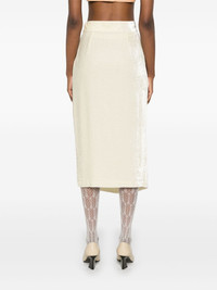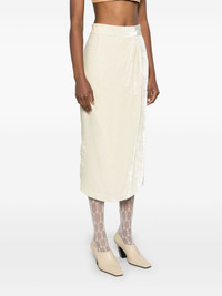 velvet midi skirt Highlights - White - Crushed velvet - Concealed side zip fastening - Gathered detailing - Wrap design - Column silhouette - Straight hem - Full lining - Mid-length Made In Italy Composition Outer: Viscose 82%, Silk 18% Lining: Polyester 100% SIZE & FIT Model measurements Height 5 ft 11 in(1.8 m) Bust/Chest 31.49 in(80 cm) Hips 36.61 in(93 cm) Waist 24.4 in(62 cm) FittingInformation This midi-length skirt is intended to be worn high on the waist Made from a midweight non-stretch fabric