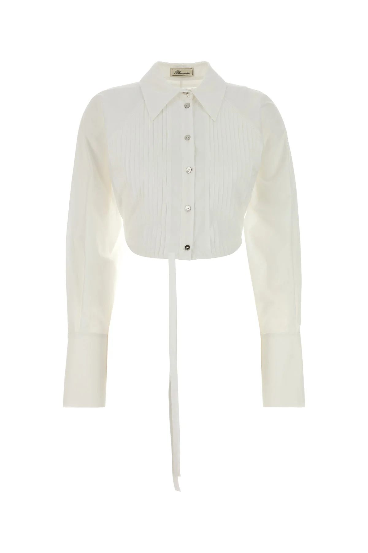 Cropped-cut shirt realized in pure cotton poplin enriched by adjustable straps at the back. - Italian collar - Buttons closure - Buttoned maxi angle cuffs DETAILS White poplin shirt Exterior: 100% Cotton Made in portugal Sample size: 38