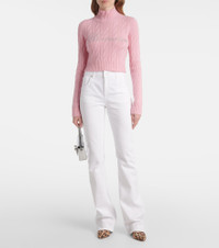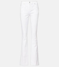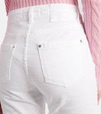 Product Details - Material: 98% cotton, 2% elastane - Care instructions: machine wash at 30 degrees - Made in Albania - Designer color name: White Pearl - Closure: zip and button fastening - Pockets: five pockets - Belt loops - Material II: 100% cotton - Item number: P00997450 Size & Fit - True to size - Fits large to size - we recommend trying one size smaller - Non-stretchy fabric - Slim-leg with a flared hem - High-rise - The model seen in the picture is 178cm-5'10" and wearing a size IT 38