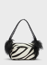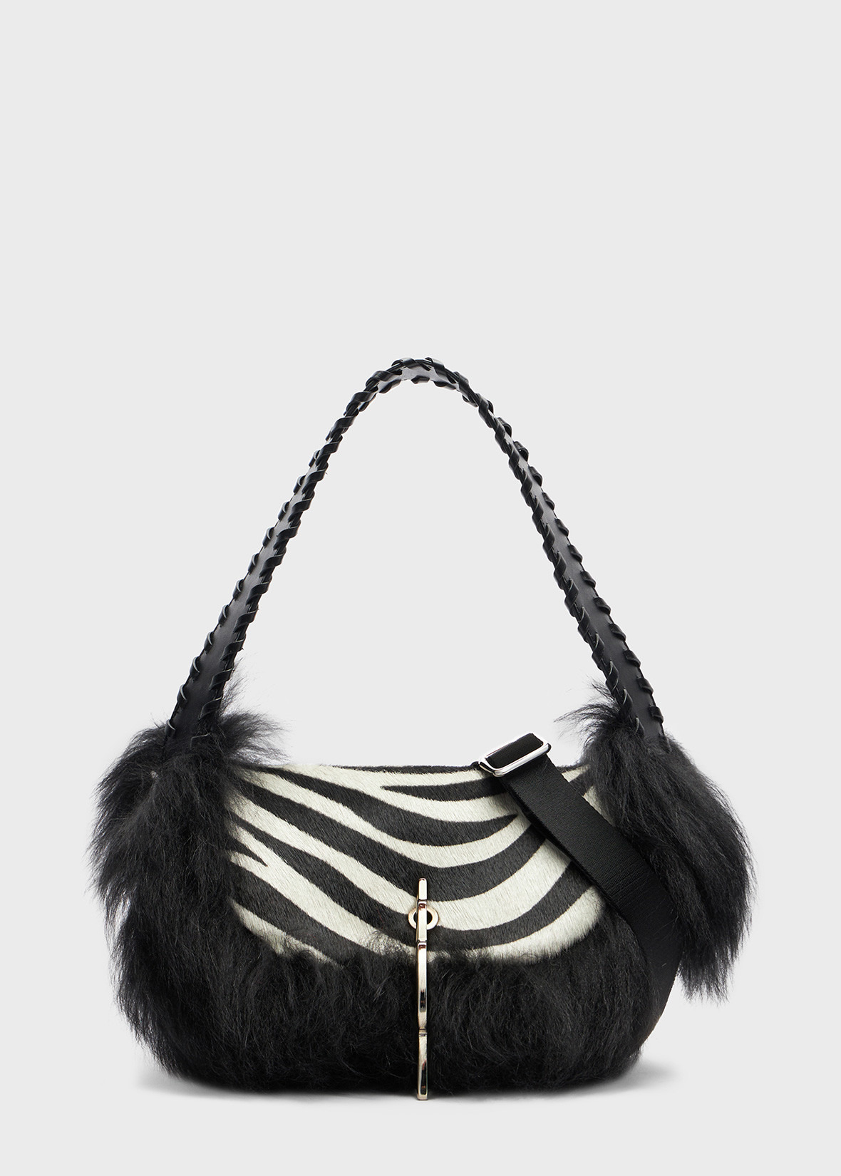 MINI MESSENGER BAG IN LEATHER WITH COWHIDE EFFECT AND ZEBRA PRINT, FEATURING A LAMB'S WOOL TRIM FLAP, MAGNETIC CLOSURE, AND METAL HOOK WITH MONOGRAM B CHARM. COMPOSITION: 100% FUR - MINI MESSENGER BAG - COWHIDE EFFECT LEATHER - ZEBRA PRINT - LAMB'S WOOL TRIM FLAP - ADJUSTABLE SHOULDER STRAP - INTERNAL LINING - MAGNETIC CLOSURE AND METAL HOOK - MONOGRAM B CHARM DETAILS COLORS: BLACK, WHITE