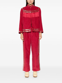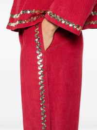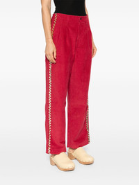 Bandstand Murray trousers Highlights - Medium red - Cotton - Corduroy - Front button and zip fastening - Belt loops - Sequin embellishment to the side - Pleat detailing - Two side inset pockets - Two rear button-fastening jetted pockets - High-waisted - Wide leg Imported Composition Outer: Cotton 100% Lining: Viscose 100% SIZE & FIT Model measurements Height 5 ft 11 in(1.8 m) Bust/Chest 33.07 in(84 cm) Hips 37.4 in(95 cm) Waist 25.19 in(64 cm) FittingInformation Designed with a wide-leg cut, these trousers allow for a close fit at the waist and offer a loose and roomy fit over the leg The elasticated waist allows for a comfortable fit Made from a midweight non-stretch fabric