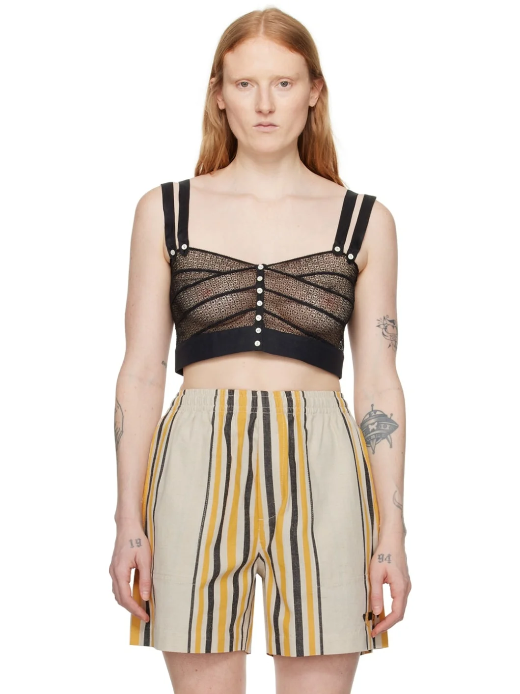 Semi-sheer cotton-blend lace tank top. Stripes throughout. · Paneled construction · Plain-woven trim at cropped hem · Detachable shoulder straps · Button closure at back This item is part of a limited run of 51. Supplier color: Black