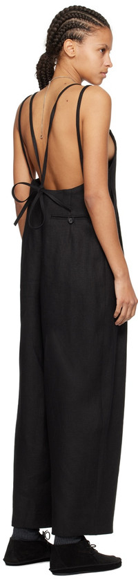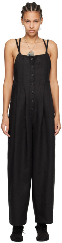 Linen hopsack jumpsuit. · Square neck · Button closure · Three-pocket styling · Pleats at front · Sliding shoulder straps · Self-tie fastening at back This item is part of a limited run of 51. Supplier color: Black