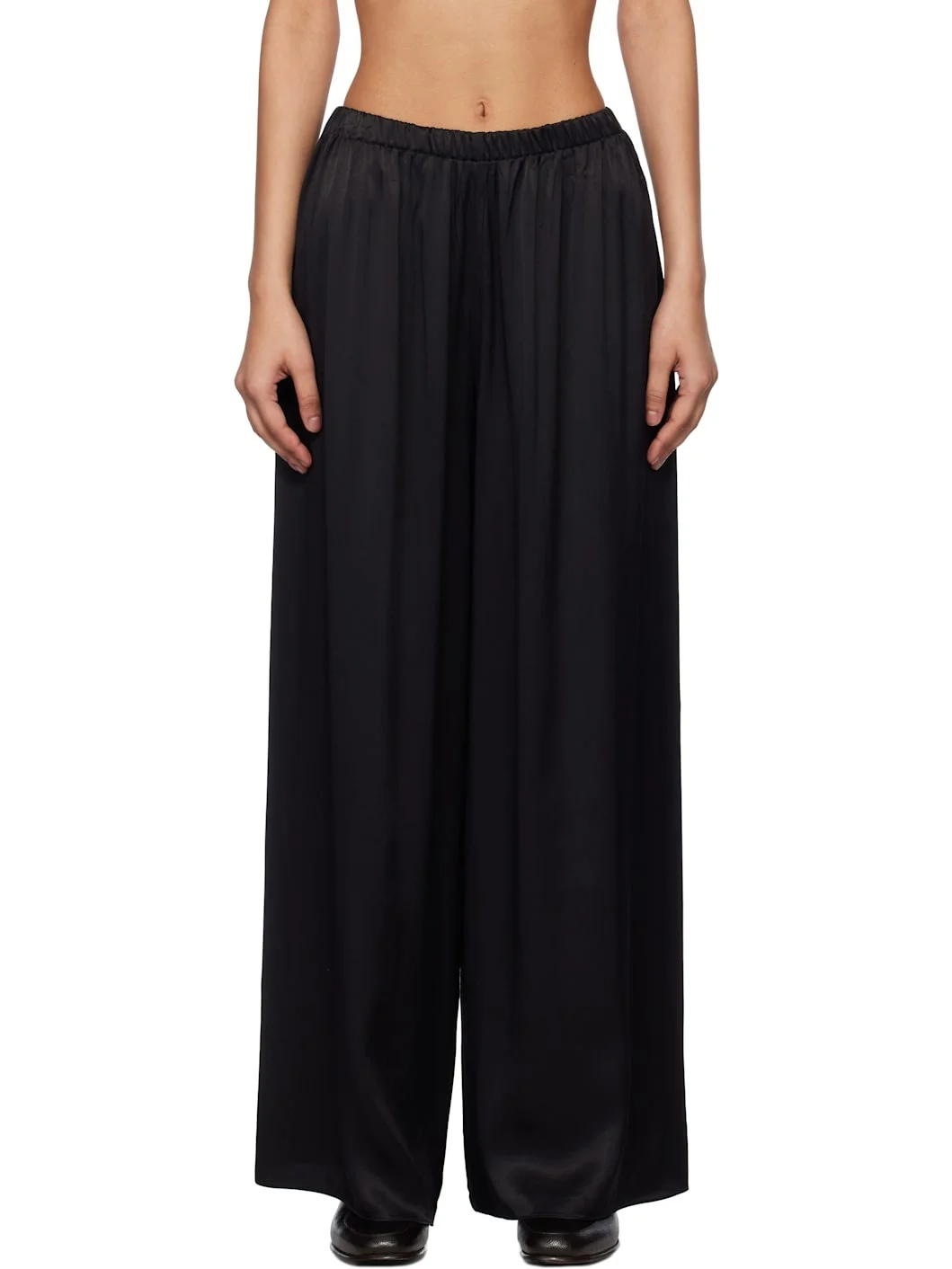 Loose-fit viscose satin trousers. Elasticized waistband. This item is part of a limited run of 90. Supplier color: Black 100% viscose. Made in India 251169F087004