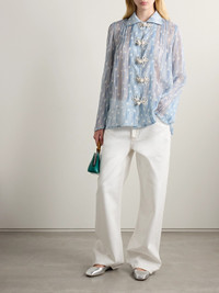 Inspired by fabric from the 1930s, BODE's ‘Meridian' blouse is made from airy silk-georgette patterned with a combination of stripes and polka dots nodding to the Art Deco era. It has a loose fit and fastens with intricately knotted buttons.