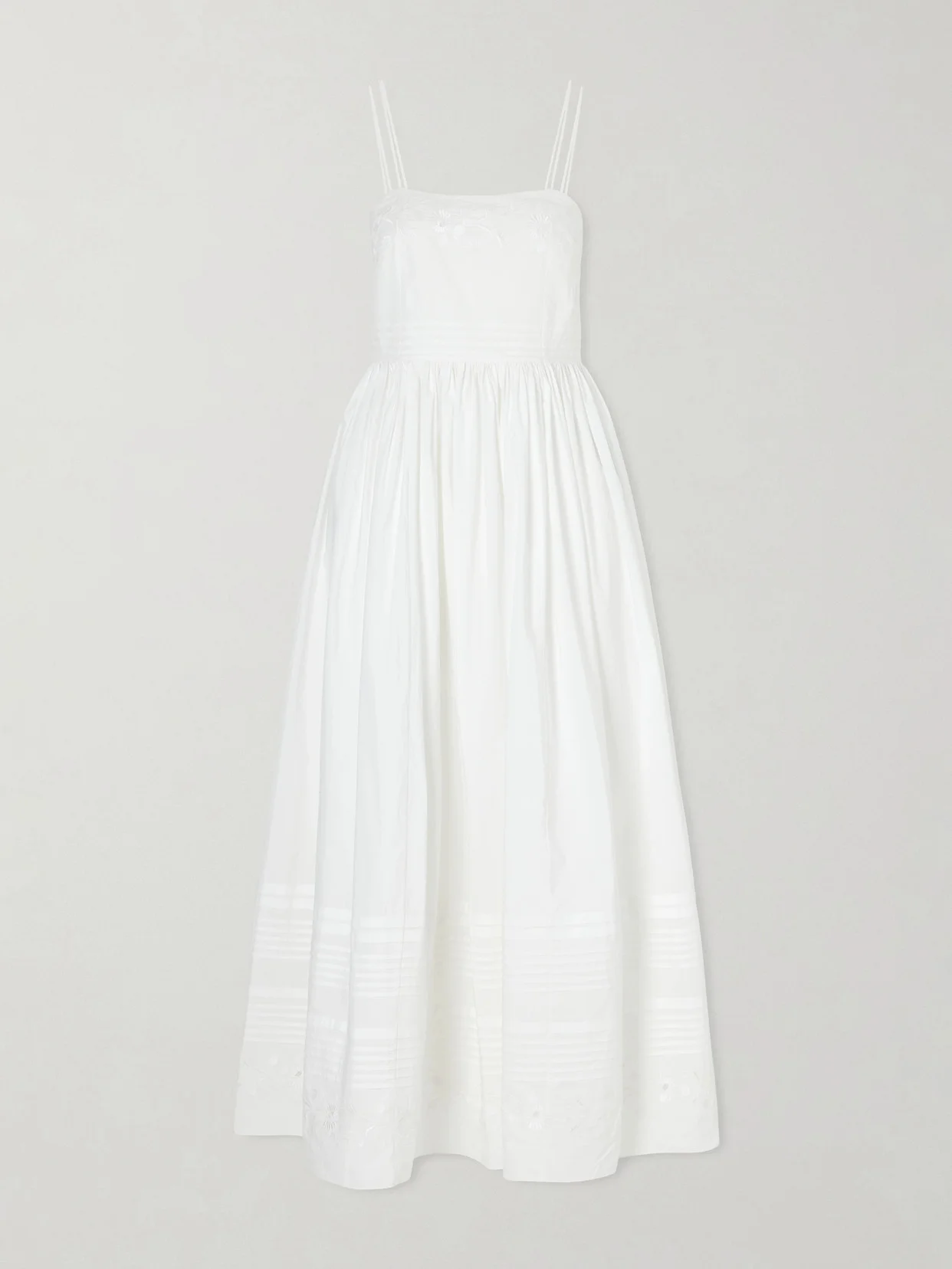 Chamomile Pintucked Embroidered Cotton-poplin Midi Dress