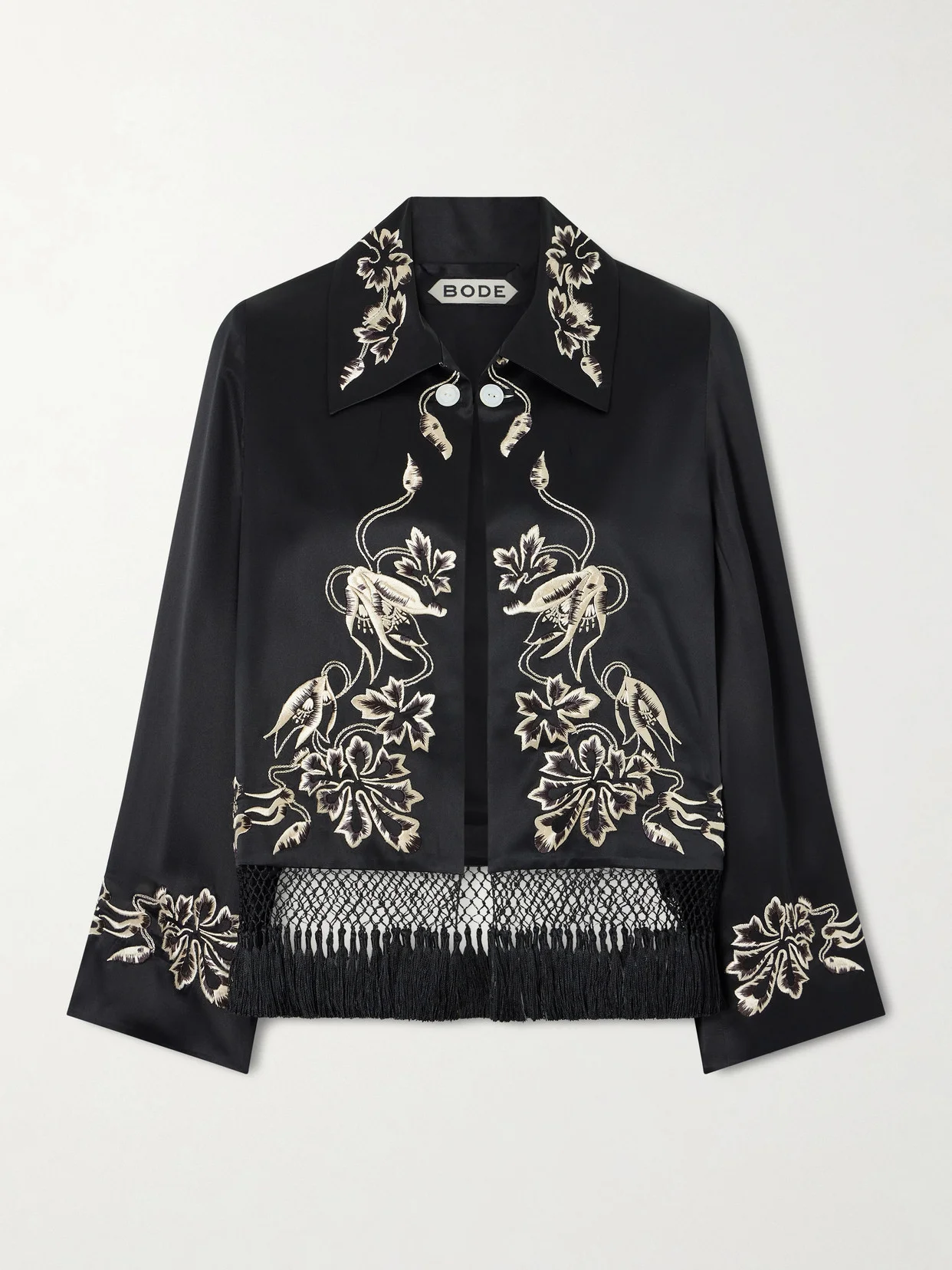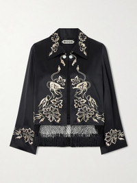 Phantasm Fringed Embroidered Silk-satin Jacket