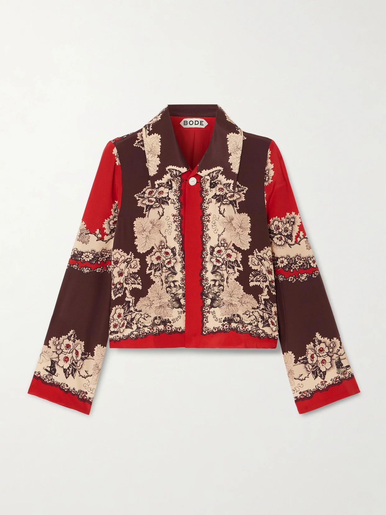 Like any great 'Storybook', BODE's jacket is full of charm and totally memorable. It's made from silk with illustrations taken from the first edition of Alice's Adventures in Wonderland nestled within the floral motif.