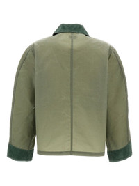corduroy-trim patch-pocket jacket Highlights - Green - Waxed finish - Corduroy details - Front button fastening - Three patch pockets - Logo patch Imported Composition Cotton 100% Washing instructions Read Manufacturer Guidelines