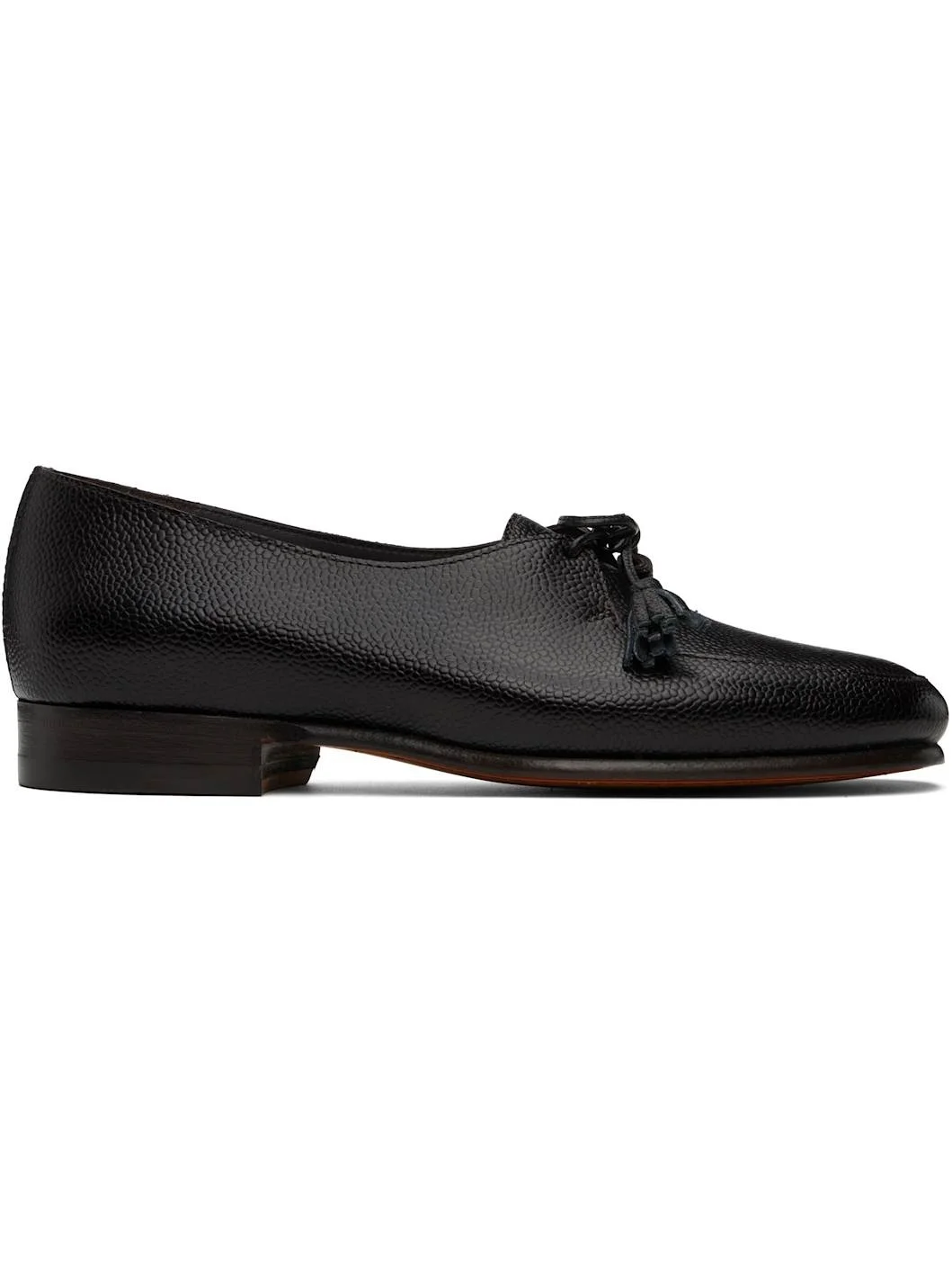 Grained calfskin derbys in brown. · Moc toe · Tassels at lace-up closure · Suede and buffed leather lining · Stacked leather heel with rubber injection · Leather sole Supplier color: Brown Upper: calfskin. Sole: leather, rubber. Made in Italy 251169F121000