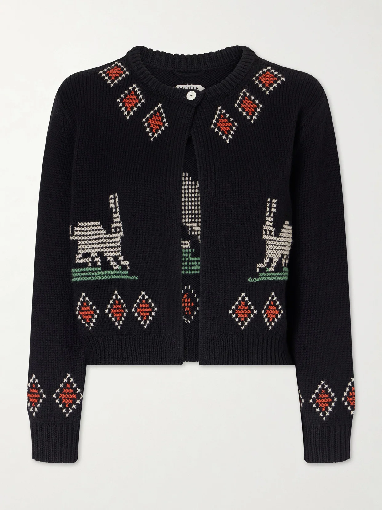 True to its name, BODE's 'Bunny' cardigan is jacquard-knitted with charming rabbits alongside geometric motifs. Made in Peru from wool, it fastens with a single button at the front, allowing your top or shirt underneath to peek through.