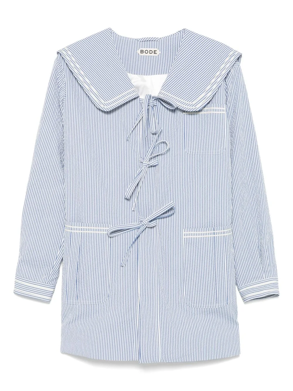 Club Stripe sailor coat Highlights - Cerulean blue - Concealed front button fastening - Front tie fastening - Buttoned cuffs - Three front patch pockets Imported Composition Outer: Cotton 97%, Elastane 3% Lining: Viscose 100% SIZE & FIT Model measurements Height 5 ft 9 in(1.76 m) Bust/Chest 31.88 in(81 cm) Hips 35.43 in(90 cm) Waist 24.8 in(63 cm) FittingInformation Designed to be unstructured, offering a loose fit throughout The tie fastening gives an adaptable and personalised fit Made from a midweight fabric
