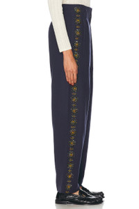 Details - Self: 100% wool - Lining: 100% viscose - Made in India - Dry clean only - Zip fly with button closure - Side slit pockets - Back welt pockets - Beaded floral design at sides - Twill fabric - Our Style No. BOFE-WP22 - Manufacturer Style No. WRF24BT036