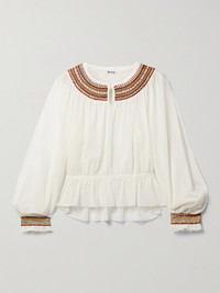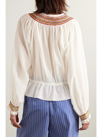 BODE's blouse is inspired by a style from the '60s - the brand reproduced the original with its own meaningful touch. Cut from soft, filmy cotton-voile, it's intricately embroidered with colorful smocking along the yoke and cuffs and has romantic billowy sleeves.