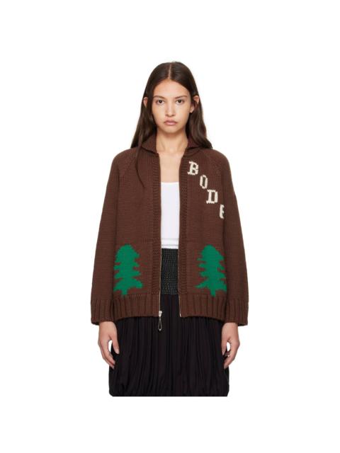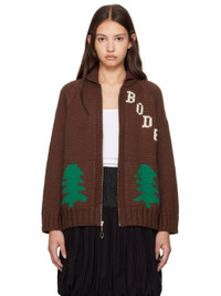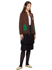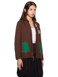 Hand-knit wool cardigan. · Shawl collar · Zip closure · Intarsia logo at chest · Patch pockets · Intarsia graphics at front and back · Rib-knit hem and cuffs · Raglan sleeves This item is part of a limited run of 157. Supplier color: Brown/Brown