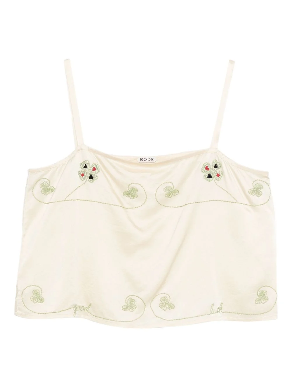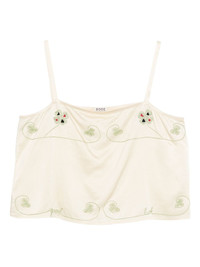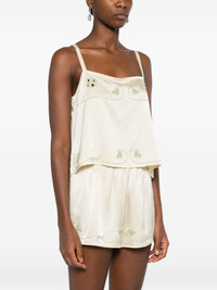 floral-embroidered tank top Highlights - Beige - Embroidered floral details - Clover motif - Thin shoulder straps Imported Composition Silk 100% SIZE & FIT Model measurements Height 5 ft 10 in(1.78 m) Bust/Chest 31.49 in(80 cm) Hips 37 in(94 cm) Waist 23.62 in(60 cm) Washing instructions Dry Clean Only