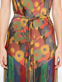 floral-print fringe dress Highlights - Multicolorur - Floral print - Self-tie belt - Cowl neck - Layered fringe - Sleeveless Imported Composition Silk 100% SIZE & FIT Model measurements Height 5 ft 9 in(1.75 m) Bust/Chest 32.67 in(83 cm) Hips 36.22 in(92 cm) Waist 24.8 in(63 cm) Washing instructions Dry Clean Only