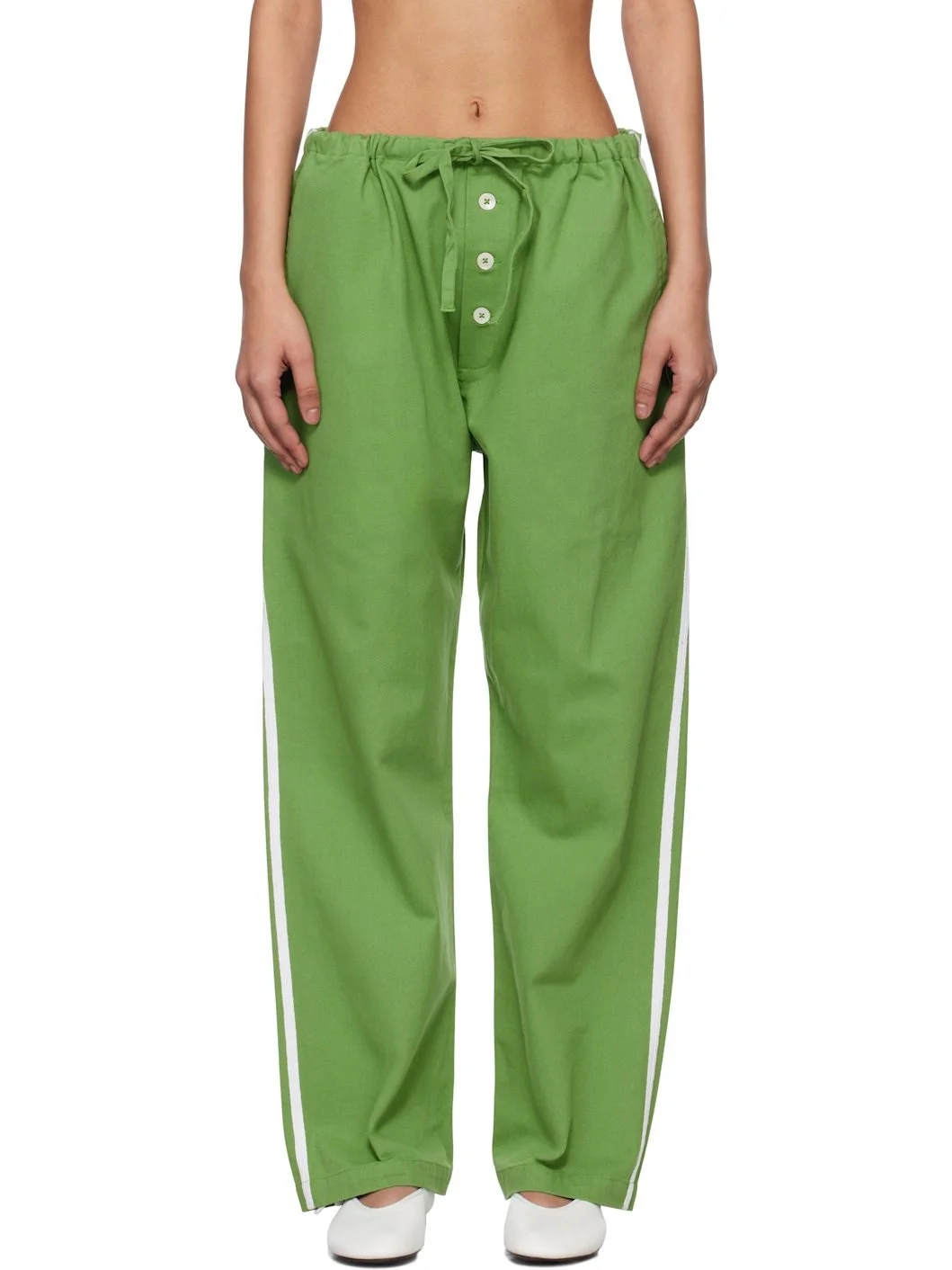 Cotton twill trousers. · Drawstring at waistband · Three-pocket styling · Exposed button fly · Striped trim at outseams This item is part of a limited run of 50. Supplier color: Green/White 100% cotton. Made in India 251169F087010