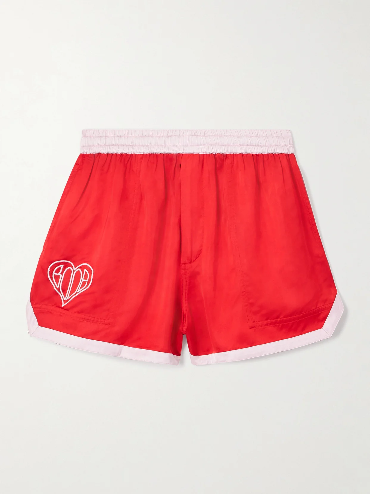 BODE's shorts are reminiscent of vintage sporty styles. Cut from glossy red satin, they have a comfortable elasticated waist with contrasting trims that match the embroidered heart logo.