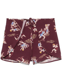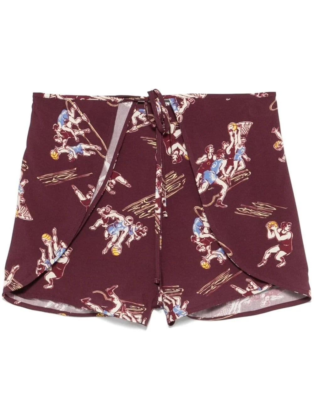 Layup shorts Highlights - Bordeaux red - Self-tie fastening - Illustration-style 'basketball' print - Wrap design - Thigh-length Imported Composition Viscose 100% SIZE & FIT Model measurements Height 5 ft 10 in(1.77 m) Bust/Chest 33.07 in(84 cm) Hips 37 in(94 cm) Waist 24.8 in(63 cm) FittingInformation Designed for a slim fit that sits just away from the body offering a close yet comfortable fit Adjust this piece’s waistband to your preference using the drawstring Made from a midweight non-stretch fabric