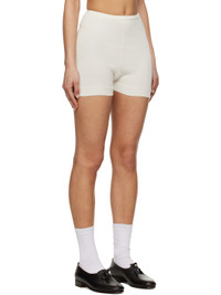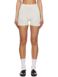 Knit cotton shorts. · Elasticized waistband · Single-pocket styling · Gusset at inseam · Jacquard logo at leg · Rib-knit cuffs This item is part of a limited run of 32. Supplier color: Ivory 100% cotton. Made in Peru 252169F088000