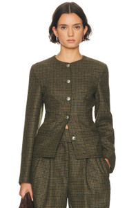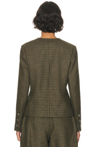 Details - Self: 100% wool - Lining: 100% viscose - Made in Romania - Dry clean only - Front button closures - Silver-tone logo button details - 4-pocket styling at front - Melton textile - Collarless design - Buttoned cuffs - Our Style No. BOFE-WO37 - Manufacturer Style No. WRF25SJ005