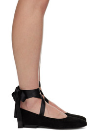 Suede ballerina flats in black. · Wraparound self-tie satin ribbons at vamp · Logo embossed at patent leather footbed · Suede and patent leather lining · Stacked leather heel · Nubuck sole Supplier color: Black Leather. Made in Italy 241169F118012