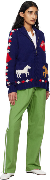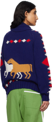 Knit merino wool cardigan. Jacquard graphics throughout. - Rib-knit shawl collar, hem, and cuffs - Zip closure - Patch pockets - Raglan sleeves This item is part of a limited run of 170. Supplier color: Blue