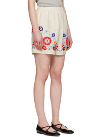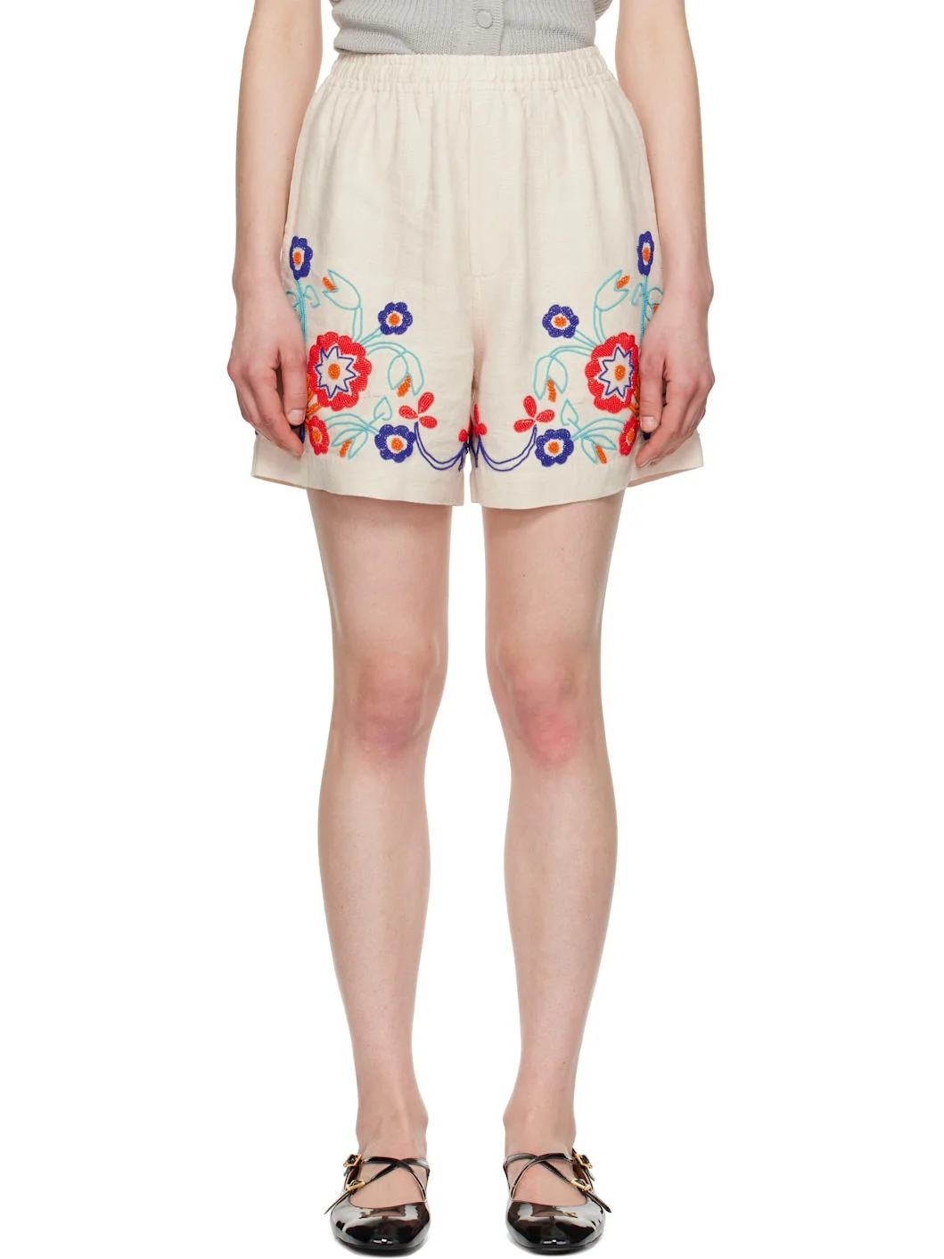 Wide-leg linen hopsack shorts. Beaded floral pattern throughout. · Concealed drawstring at elasticized waistband · Three-pocket styling · Zip fly · Dropped inseam This item is part of a limited run of 100. Supplier color: Ecru 100% linen. Made in India 252169F088001