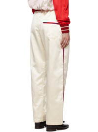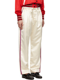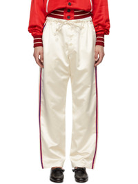Polyester satin trousers. · Self-tie drawstring at waistband · Three-pocket styling · Button fly · Striped trim at outseams and back pocket This item is part of a limited run of 63. Supplier color: Cream 100% polyester. Made in India 252169F087000