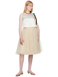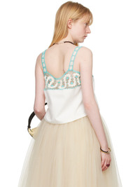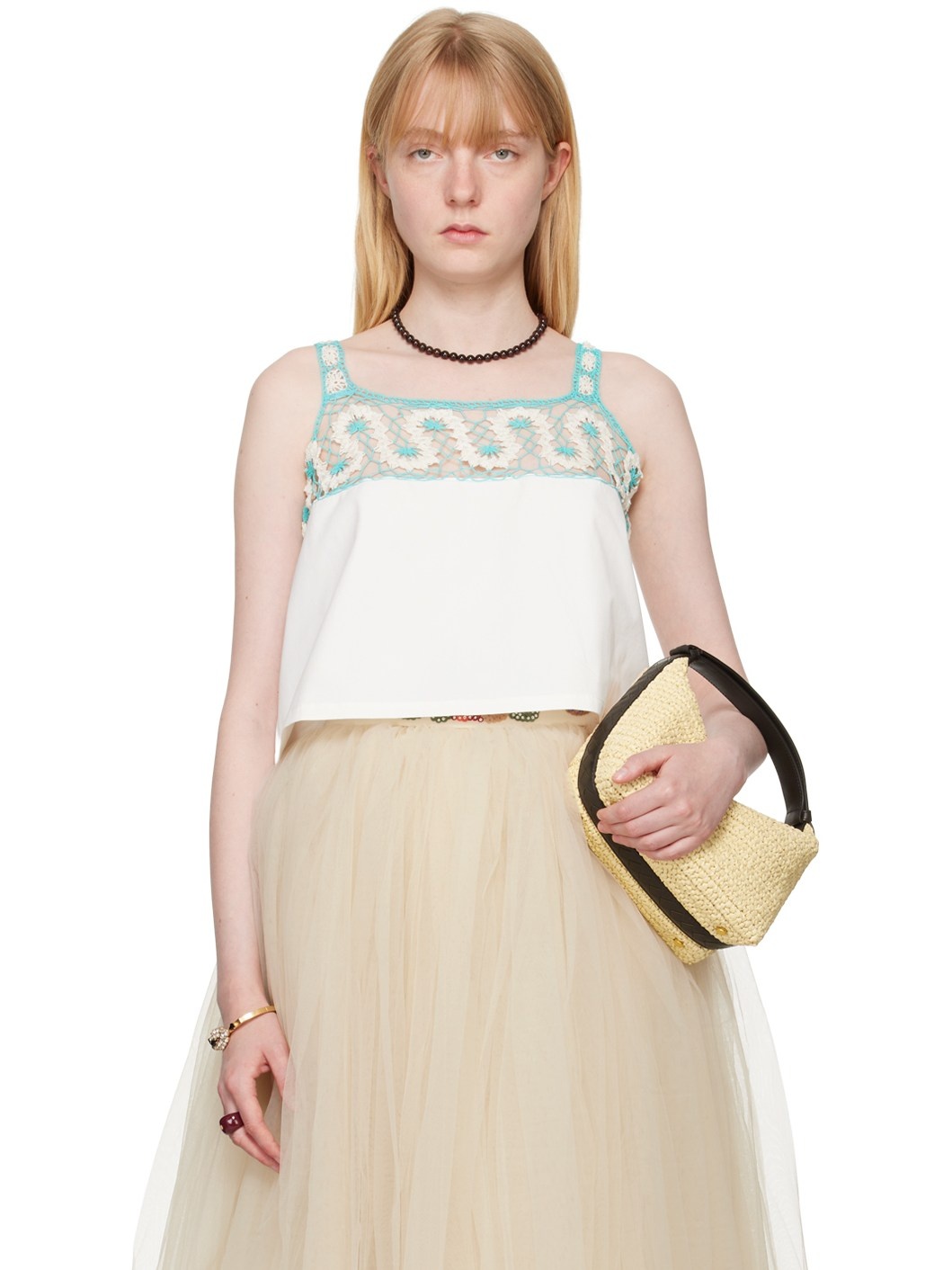 Cotton canvas tank top. Hand-crocheted lace trim at chest and shoulder straps. This item is part of a limited run of 55. Supplier color: Cream 100% cotton. Made in India 242169F111008