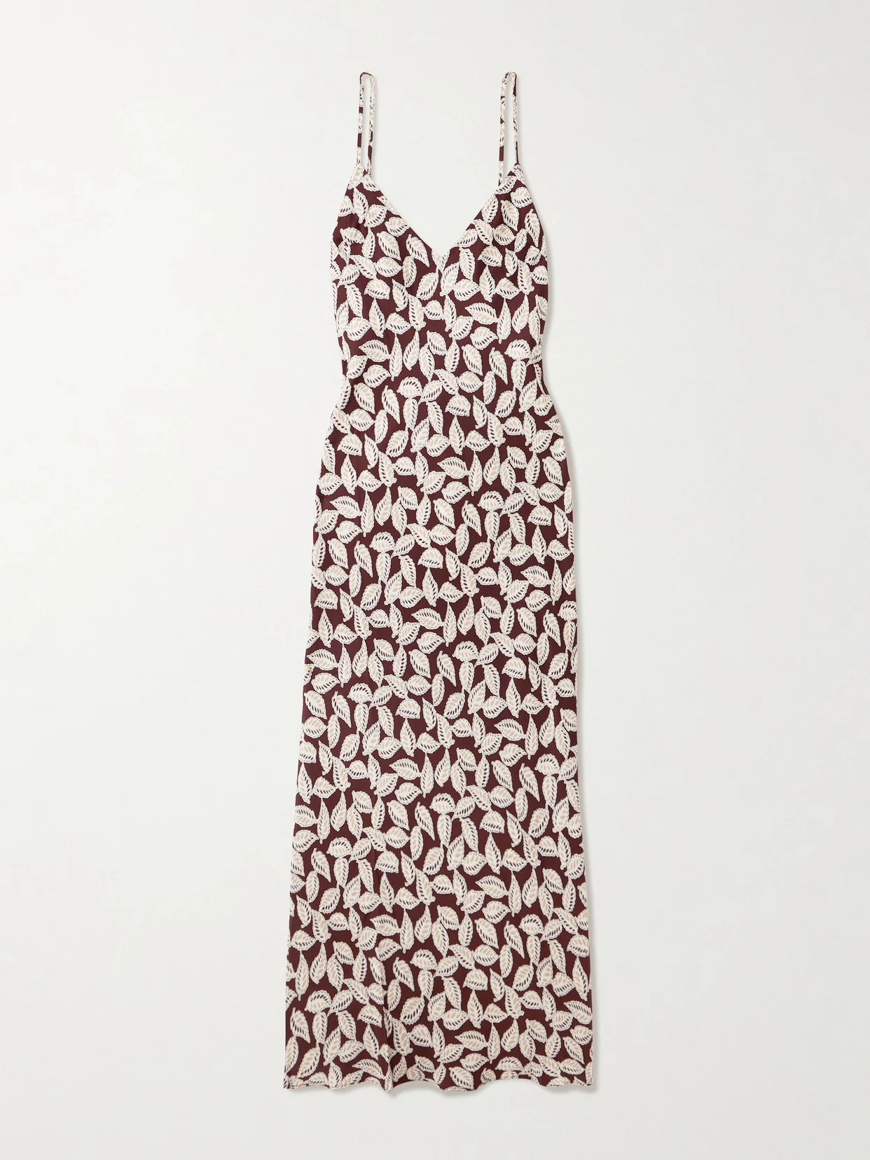 For BODE, storytelling is part of the design process. An homage to J.M. Barrie's Peter Pan ; this dress is made from twill "clad in skeleton leaves;" which is how the writer described the boy. It's set on slim straps and has a low, dipped back.