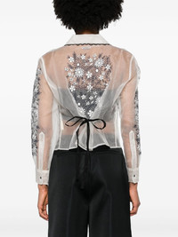 floral-embroidered silk blouse Highlights - Cream white - Silk - Semi-sheer construction - All-over floral embroidery - Scallop edge - Spread collar - Front button fastening - Tied waist - Long sleeves - Buttoned cuffs - Straight hem - Cropped - We've partnered with good on you â an independent agency that rates how brands perform in relation to their impact on the planet, people and animals, with a multi-criteria rating simplified to a five points scale. in order to be awarded our conscious label, larger brands need to score a minimum of four out of five ('good'), while smaller brands must score at least three out of five ('it's a start'). - This item comes from a brand rated three out of five ('it's a start') by good on you at the time it was added on farfetch. please note, this is a brand-level rating and does not guarantee that this product is made with conscious materials. - Learn more about what makes a product conscious on our conscious criteria page Imported Composition Silk 100% SIZE & FIT Model measurements Height 5 ft 10 in(1.77 m) Bust/Chest 32.28 in(82 cm) Hips 37 in(94 cm) Waist 25.19 in(64 cm) FittingInformation Designed for a slim fit that sits just away from the body offering a close yet comfortable fit The adjustable tie waist gives a more adaptable and personalised fit Made from a lightweight non-stretch fabric This piece fits true to size – take your usual size