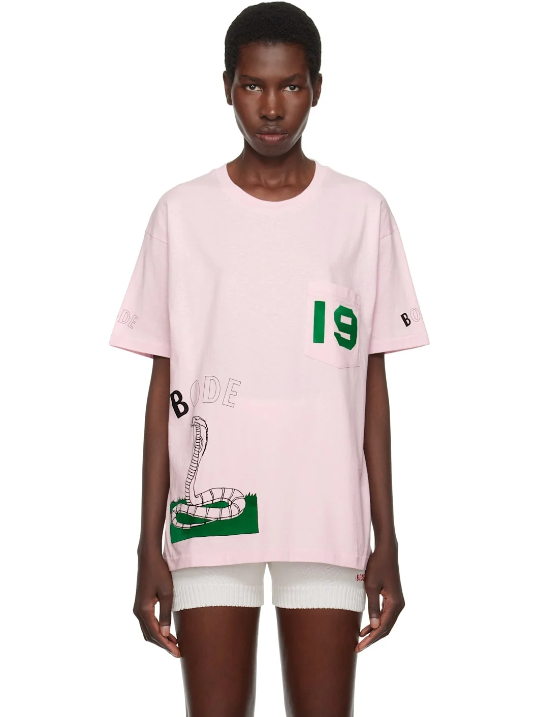 Cotton jersey T-shirt. · Rib-knit crewneck · Patch pocket at chest · Felted text and graphic at front · Logo and graphic printed at front hem · Logo printed at sleeves and back hem This item is part of a limited run of 160. Supplier color: Pink 100% cotton. Made in Portugal 251169F110012