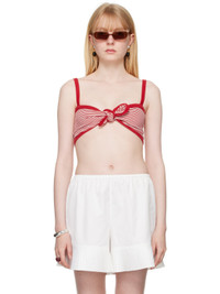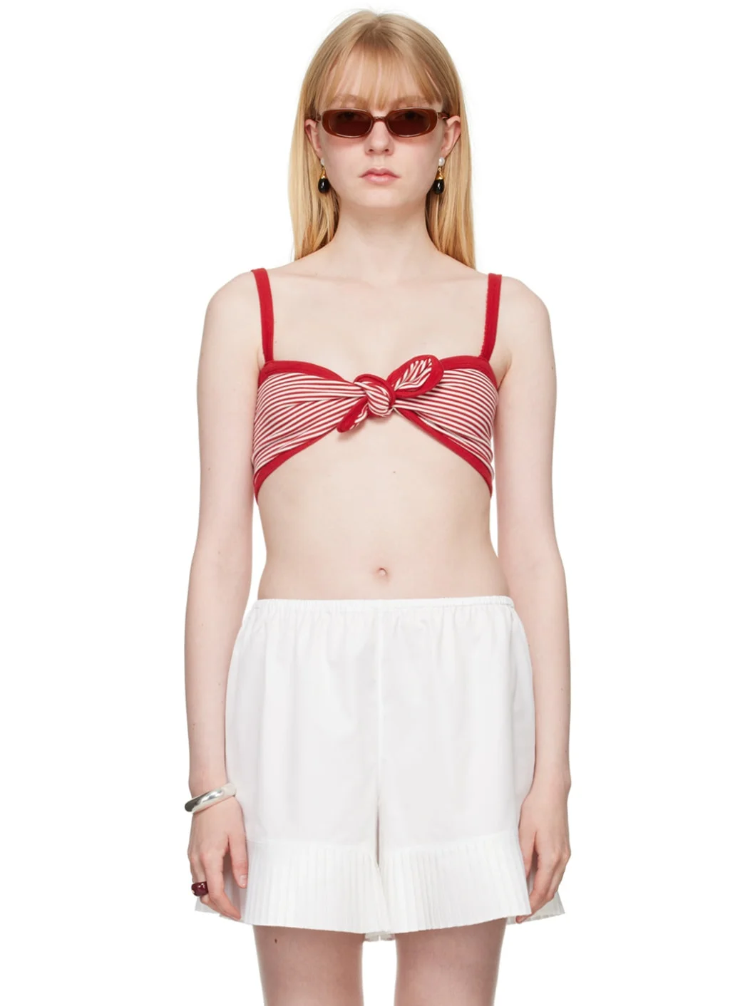 Knit cotton bra. Stripes throughout. · Sweetheart neck · Self-tie closure · Raw edge at fixed shoulder straps This item is part of a limited run of 30. Supplier color: Red/Multi 100% cotton. Made in Portugal 242169F073001